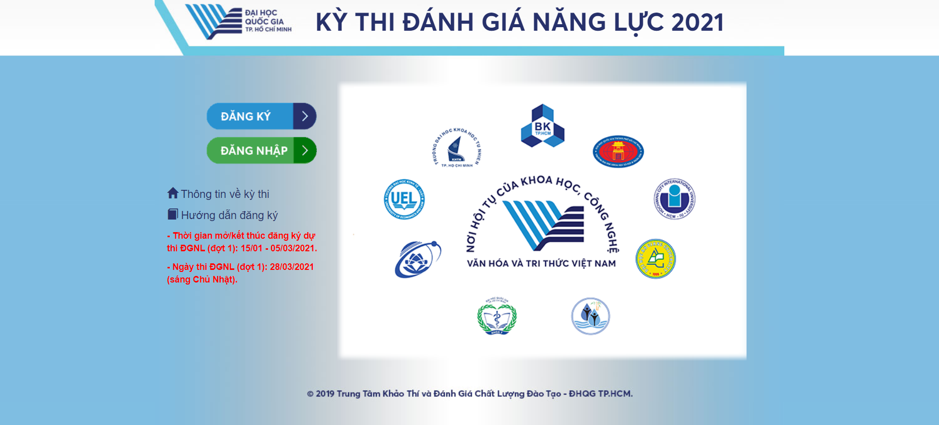 - 15/1/2021: Mở đăng ký dự thi ĐGNL đợt 1;
