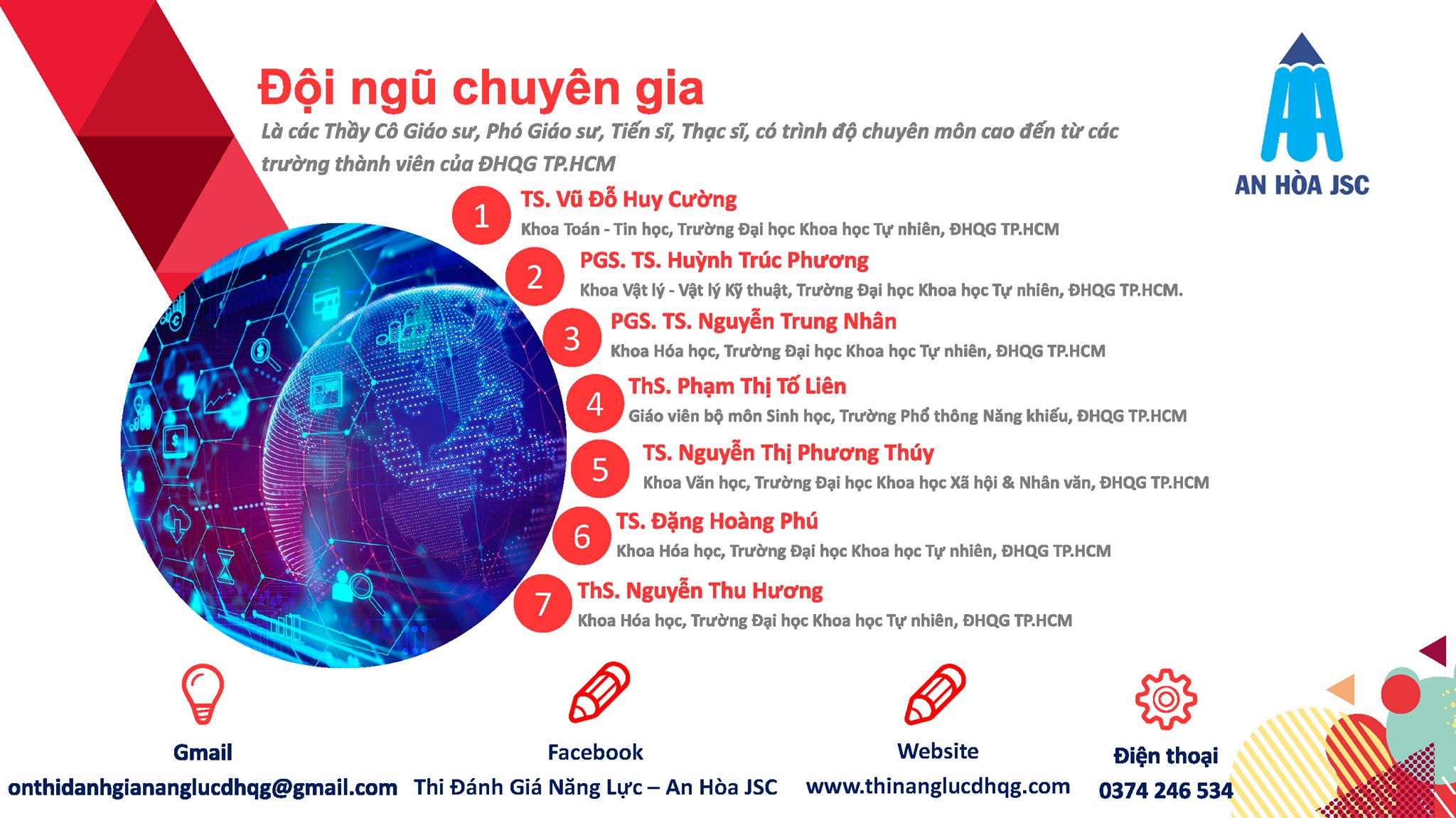 Đội ngũ chuyên gia gồm những Giáo sư, Phó Giáo sư, Tiến sĩ của ĐHQG TP.HCM. Có nhiều năm kinh nghiệm thực tiễn trong Đào tạo & Nghiên cứu khoa học. Mang đến trải nghiệm chân thật nhất về kỳ thi cho các thí sinh.