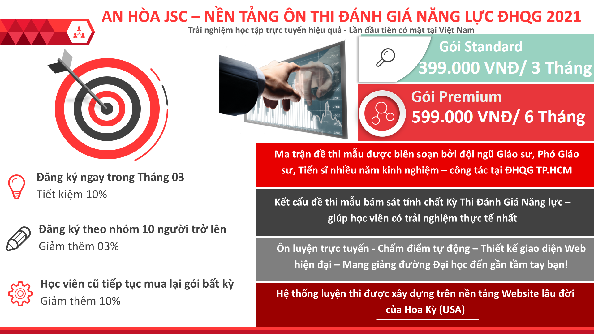 Để có thể “làm nhanh, diệt gọn” những kiến thức Toán trên, đòi hỏi thí sinh phải có tư duy thật tốt và kiên trì ôn luyện. Bạn có thể tự luyện tập tại nhà và thông qua thầy cô của mình hoặc đăng ký các gói Thi thử thông qua website: www.thinanglucdhqg.com để có thể tiếp cận những bí kíp siêu hay một cách nhanh nhất, chúng tôi hiện đang cung cấp kho dữ liệu đề thi khổng lồ và bám sát với cấu trúc đề thi Đánh Giá Năng Lực ĐHQG 2021.