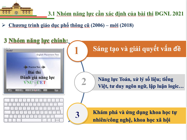 GS.TS Nguyễn Tiến Thảo - Giám đốc Trung tâm Khảo thí ĐHQGHN cho biết, khác với những năm trước, bài thi Đánh giá năng lực (ĐGNL) trong giai đoạn năm nay tiếp cận theo hướng đánh giá năng lực học sinh trung học phổ thông một cách toàn diện hơn, phù hợp khoa học khảo thí hiện đại.