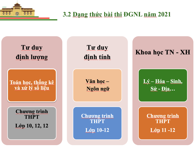 Về cấu trúc, bài thi ĐGNL gồm 3 hợp phần: