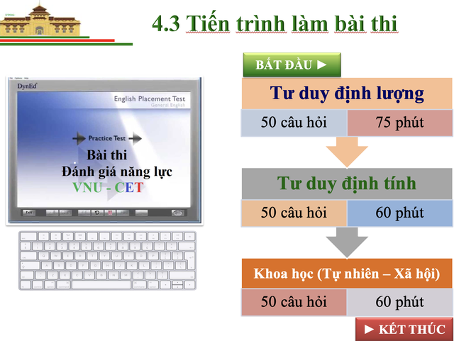 - Phần 2: Tư duy định tính có 50 câu hỏi, 60 phút;